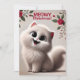Uma cena macia e wintery com um gato branco fofo com olhos grandes e expressivos. A frase "Meowy Christmas" está escrita em caracteres festivos e caprichosos.
