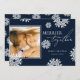 Use nossos cartões de Natal com flocos de neve juntos para desejar a seus amigos e família um Feliz Natal. Design apresenta um fundo azul-marinho de tendência com uma fotografia da sua escolha, flocos de neve caindo e um modelo elegante.