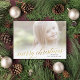 Este Cartões de foto de Natal elegante apresenta um script shimmering em folha falsa, com um backer e espaço riscados para uma breve mensagem de feriado. Carregue a sua própria fotografia e personalize as informações para incluir a saudação de Natal da sua família.