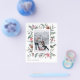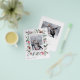Elegante de Orçamento Feliz Natal Adicione seu próprio cartão fotográfico com Holly Berries e Greenery modernos na frente e adicione uma segunda foto na parte de trás. É o cartão de férias perfeito para enviar para a família e amigos.