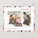 Orçamento Feliz Natal Adicione sua própria Foto à frente com um cartão de feriado mínimo simples e elegante com poinsettia de aquarela, rosa, vermelha, ouro, holly, flores festivas com borda verde - adicione uma segunda foto no verso com um roteiro elegante para incluir seus nomes e datas. É o cartão festivo perfeito para enviar para a família e amigos.