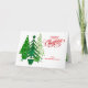 Este cartão festivo de Natal tem três árvores de Natal verdes, com folhas verdes simuladas e bordas douradas. Há rico vermelho que diz "Feliz Natal" ao lado das árvores A frente também é personalizada com seu nome de família ou outro texto.