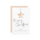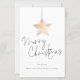 Cartão de Natal Merry Script Minimalista de Watercolor Star. Um cartão plano de 5,5 x 8,5" para as suas saudações festivas em um estoque de cartão SEMI GLOSS 110 lb brilhante (semelhante à espessura de um cartão postal). OBSERVE: O envelope fornecido com este cartão é maior que o cartão a 6,75" x 9". Estilo contemporâneo com script moderno de conjunto de estilos manuscritos para o cabeçalho principal e personalize facilmente com sua saudação e nomes na parte inferior. Uma elegante ilustração de estrela de aquarela está no centro superior. Uma sombra de pêssego coordenadora está na parte traseira, que pode ser alterada para outra cor se você quiser através de personalização adicional.