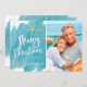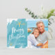 A design de cartão de Natal de praia minimalista da Boutique Co. náutica apresenta a tipografia moderna escrita à mão, a sua fotografia de retrato favorita (proporção 5x7) e os sotaques de estrelas de aquarela para um tema de feriado tropical divertido. O design é definido em um fundo de amostra de aqua teal d'água. #FelizNatal #CartõesFeriados #Feriados Tropicais