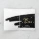 Cartão de Natal na moda com sua própria foto na parte dianteira e com um fundo branco e uma pintura preta bonita na parte externa e no interior. Com o texto "nós desejamos-lhe o Feliz Natal" em letras elegantes do ouro na parte dianteira e no "feliz ano novo" no interior.