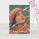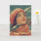 A cena nostálgica de neve mostra uma garota com um chapéu vermelho e abafador, com pássaros sentados em seus ombros.