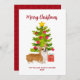 Cartão de Natal de Corgi bonito com árvore de Natal e presente. Personalize com seu texto.