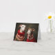 Cachorros Brancos parecem bonitos nos seus suéteres de Natal. Cartão de Natal engraçado para cães. Criado digitalmente. Nenhum cão foi feito para vestir suéteres/saltadores de Natal ou outra roupa na criação deste cartão.
