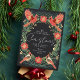 Deseje aos seus entes queridos uma design de Cartões Feliz de Natal com um design elegante com aves cardeais, poinsettia e folhagem contra um fundo negro. Plano de fundo da página de cobrir fornecido pela Freepik.