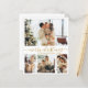 Cartão de Férias de Natal Merry Dourado Elegante Elegante Calliografia 4 Colagem de Fotos Mínima de Orçamento. Este modelo de cartão festivo, simples, de quatro (4) fotos apresenta uma bonito colagem fotográfica e diz "Feliz Natal"! O texto de saudação de "Feliz Natal" é escrito em um belo tipo de letra branco-suástica, com letras esbranquiçadas, em ouro, sobre fundo branco. No verso com modelo de mensagem de saudação com um pequeno rabisco cardíaco em branco e um modelo de foto horizontal. Bonito cartão de boas-vindas para sua família e amigos no Natal.