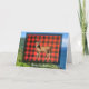 Um design de xadrez de búfalos acolhedor com veado de floresta posando para sua fotografia na natureza. A grama verde e a paisagem oceânica atrás dele. A xadrez de búfalo em vermelho e preto é um padrão eterno que surgiu no século XVIII na Escócia. Um design rústico de animais.