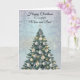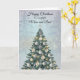 Envie alegria natalina tradicional com este cartão elegante de árvore de Natal. Uma árvore lindamente decorada brilha com ornamentos prateados, tornando-o uma escolha perfeita para enviar votos calorosos de Natal para sua Mamãe e Papai. No verso do cartão, você pode enviar sua foto da família e incluir os nomes de seus familiares para uma mensagem de Natal pessoal especial.