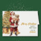 Na frente desta bela placa de Cartões de natal, um Papai Noel alegre segura um filhote de Retirador de Ouros. Ele fica ao lado de uma árvore de Natal decorada a ouro. O texto dourado à direita diz "MERRY CHRISTMAS", com FELIZ ANO NOVO em verde abaixo. Sua assinatura personalizada está em verde e ouro no fundo. Todo o texto, dentro e fora, pode ser facilmente mudado para qualquer coisa que você quiser. Você pode ver mais imagens de Retriever de Ouros, assim como outras imagens de raças, na Aldeia de Cachorros.