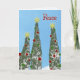 Design gráfico temático de Natal com 3 árvores de Natal magras e o texto "Paz". Faz um belo cartão de Natal e um selo de correio.