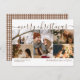 Saudações de Fim de Ano Cartão postal de Natal personalizado com cinco fotos da Ricaso - projetado com um texto de tipografia em pergaminho com modelo de fotografias na frente e um padrão xadrez marrom e branco no verso