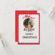 Celebre as festas de fim de ano com este cartão de Natal personalizado para cachorros, apresentando a foto do seu animal de estimação dentro de uma moldura ornamentada festiva. A clássica borda vermelha e o destaque da fita criam uma sensação sazonal calorosa, tornando-o um cumprimento divertido e emocionante para amigos e familiares.