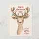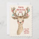 Envie alegria natalina com este cartão de Natal personalizado apresentando um adorável renque reindeer aquarelado com chifres decorados segurando enfeites e estrelas. O charmoso design rústico de floresta inclui tons pastéis suaves e uma aparência pintada à mão, tornando-o uma escolha perfeita para famílias, amigos ou entes queridos.