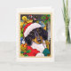 Está na hora de ficar festivo com este cartão de saudações de Papais noeis! Apresentando um belo Daschund com um chapéu de Papai Noel e um cheio de presentes. O dentro de saudações e mensagens pode ser personalizado, para que você possa torná-lo realmente único.