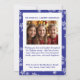 Tragam os dias de neve! Espalhe a alegria de férias com este clássico cartão de Natal que tem uma reviravolta moderna. Apresentando um belo fundo azul com designs brancos de flocos de neve, e um quadro de arco para realçar sua imagem de retrato na frente, e uma foto adicional no verso, emoldurada por um padrão de floco de neve. Há muito espaço no verso para inserir sua mensagem à família e aos amigos, ou assinar seus nomes no cartão para um toque pessoal. Escolha entre vários tipos de papel e formas para se adequar ao seu estilo, carregue suas imagens e edite o texto para criar um cartão de feriado exclusivo que eles irão valorizar!