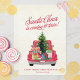 Envie alegria natalina com este cartão plano fofo com as palavras "Papai Noel está chegando!" com um caminhão vermelho antigo transportando uma árvore de Natal, presentes de Natal, chapéu do Papai Noel e passarinho.