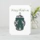 Cartão de Natal Plano do Vaso de Chinoiserie com Laço Verde. Deseje um Feliz Natal aos seus amigos e entes queridos com este lindo cartão.