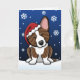 Os cartões de Natal rajados bonitos do Corgi de Galês do casaco de lã são perfeitos enviar a todos os amantes do cão em sua lista do feriado este ano! Uns desenhos animados adoráveis do corgi do kawaii sentam-se em cima da neve recentemente caída que veste um boné do papai noel, quando os flocos de neve derivarem delicadamente abaixo toda ao redor dele. O interior igualmente tem flocos de neve e lê-os, "boas festas!" Você pode facilmente personalizar o texto a toda a mensagem imediatamente. Outras cores do casaco estão disponíveis nesta raça do cão.