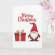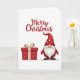 Brilhe o feriado de alguém com um cartão de Natal alegre com um gnomo de desenho animado! Esta adorável cara com uma barba branca longa e um chapéu vermelho coberto por estrelas brancas traz certamente um sorriso para o rosto de qualquer um. Ele fica ao lado de uma bela caixa vermelha de presentes amarrada com uma fita branca e um arco, fazer este cartão sentir uma 🎅 festiva extra 🏼 As palavras "Feliz Natal" são escritas elegantemente em letra vermelha cursiva sobre o gnomo, criando um simples design, mas atraente, contra o fundo branco comum. É a mistura perfeita de fofo e clássico para espalhar alegria de férias!