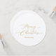 Cartão de Natal redondo com Dourado Script e Belis