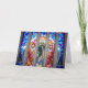 Um cartão de saudação de Natal elegante, com uma fotografia de uma janela de vidro colorido da igreja. Personalize o dentro de texto para adicionar seus nomes e altere a saudação desejada. Belo cartão de férias.