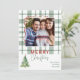 Cartão de Natal com xadrez verde e cruz com arco vermelho festivo e cor d'água. Este simples cartão verde de Natal tem uma sensação vintage, clássica, com doces toques modernos. A saudação no verso pode ser usada como está ou criar sua própria saudação com a ferramenta de personalização. Adicione sua foto de família e envie desejos de Feliz Natal para amigos e familiares. O download digital instantâneo também está disponível para sua conveniência. Encontre mais produtos de papel de carta de Natal com este tema de design na Coleção de Árvore de Natal da Rústica Xadrez Verde, na Bela Abstrato.