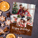 Cartaz de fotos de na moda feriado com tipografia clássica "Feliz feriado". Fotos, nomes e saudações podem ser facilmente personalizados para um toque pessoal. Um design de natal simples, minimalista e contemporâneo para destacar esta temporada de festas!
