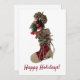 A Meia de Natal Rústica tem um padrão xadrez de búfalo vermelho com detalhes em juta e sinos. Na abertura da meia há ramos de sempre-verde com bagas vermelhas e pinhas. No verso do cartão há uma caixa de texto que permite adicionar sua própria mensagem de Natal. Se preferir, você pode excluir a caixa e escrever sua mensagem.