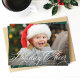 "Holiday Cheer" em um roteiro elegante senta-se no topo de uma foto horizontal solteiro. Este cartão clássico é a forma perfeita de enviar Cartões de natal para amigos e familiares. As costas são uma xadrez verde de caçador festivo.