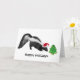 Um gambá vestindo um chapéu de Papai Noel cheira um biscoito de Natal neste cartão de feriado engraçado.