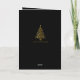 Cartão de Natal sofisticado, preto e Dourado, com árvore Dourada Ornamentado enquanto o Centerpedal e os flocos de neve dourados caem. Envelope correspondente também disponível. Feliz feriado dos Designs Paula McGee.