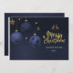 Envie elegante azul personalizado e ouro Feliz Natal e cartões de Feliz ano novo nesta temporada de festas. Estes cartões de natal não-fotográficos com uma aparência antiga apresentam sinos de Natal dourados sobre um fundo azul comum. Personalize facilmente estes cartões de Natal azuis e dourados com os seus nomes e o ano.