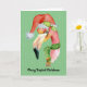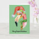 Cartão de Natal tropical com uma imagem de aquarela de Flamingo num fundo verde pontilhado. Obrigados para Creative Fabrica e Hungryjpeg para alguns dos elementos do design.