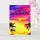 Este Cartão de Natal de Natal de Feliz Natal Tropical trará um desejo de boa alegria para a temporada de Férias. O pôr do sol azul, rosa e amarelo brilhante é espetacular atrás das Palm Trees penduradas com luzes de Feriado cintilantes. Peguem seus cartões de Natal de Natal de Feliz Natal hoje! Visite-nos em: Presentes na margem Sul