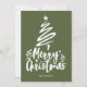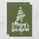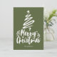 Feliz Natal na fonte decorativa com estilo de escrita com um esboço de uma árvore de Natal e estrela no design. Este cartão de Natal verde-oliva escura foi projetado para que você possa mudar a cor do fundo, dos gráficos e também digitar o nome da sua família.
