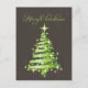 Árvore de Natal verde abstrato com estrelas verdes cintilantes sobre fundo de madeira escura com um elegante roteiro de Feliz Natal. Feliz Feriados!!
