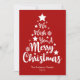 Desejamos a você um Feliz Natal em letra estilo script em forma de árvore, cartão vermelho de Natal. Você pode alterar a cor do fundo e também do gráfico principal, assim como o nome da família, o texto do ano.