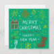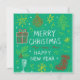 Mande alegria nesta temporada com um cartão de Natal brilhante com rabiscos feitos à mão de névoas, árvores, borbulhas, estrelas e flocos de neve. Uma maneira divertida, mas sincera, de se conectar com os entes queridos e compartilhar alegria festiva que se sente pessoal e singular. Colocado sobre um fundo verde.