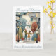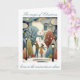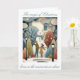 Cole papel e cartão de Natal de jovens amantes construindo um boneco de neve em um parque urbano nevado.