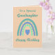 Um cartão de Boho Arco Arco-íris de Aniversário bonito com idade e nome e coração. Ele tem um dentro verso e pode ser personalizado clicando no botão 'personalizar este modelo'. Cartão bonito em verde e azul sobre fundo de pêssego pálido. Ideal para filha, neta, sobrinha ou qualquer nome.