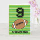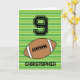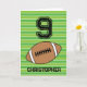Cartão personalizado de 9.º aniversário para filho, neto, sobrinho, etc. A frente apresenta um lugar para você personalizar com o nome dele. Um cartão de aniversário de futebol de excelente para jogadores de futebol e adeptos de futebol.