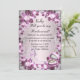 Lindas flores roxas em um fundo roxo. Planejando um casamento? Você precisa que suas amigas segurem sua mão, ajudem a organizar e façam você parecer perfeita no seu dia especial. Fazer o pedido é fácil com este cartão de será que você será minha noiva. Personalize o cartão alterando o texto nos campos fornecidos na frente e no verso. Você pode alterar o estilo da fonte, tamanho e cor, bem como o tipo e estilo de papel.