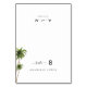Ajude seus convidados a encontrar sua mesa de casamento com esses cartões de lugar elegantes, apresentando palmeiras em aquarela e detalhes editáveis. Personalize facilmente clicando na opção "personalizar".