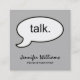 Esses Cartões de visitas Profissionais Modernos da Praça das Cinzas "Talk" são uma escolha cartão de visita única e legal para um psicólogo, psiquiatra, conselheiro ou qualquer outro negócio focado em conversar ou terapia. Este cartão é realmente atraente; seja notado e lembrado.