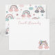 Este cartão de notas personalizado apresenta o seu nome e uma ilustração de um arco-íris com flores pequenas e fofas. O verso do cartão apresenta arco-íris, corações, estrelas e borboletas. Seria o cartão perfeito para agradecer em aniversários e chás de bebê ou apenas para enviar uma nota de agradecimento/olá.
