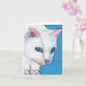 Esta imagem é de minha pintura acrílica original. É um gato branco elegante com olhos azuis vívidos e um fundo azul brilhante. Veja minha arte da loja daqui até março para produtos de harmonização com este design.